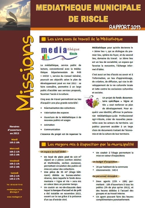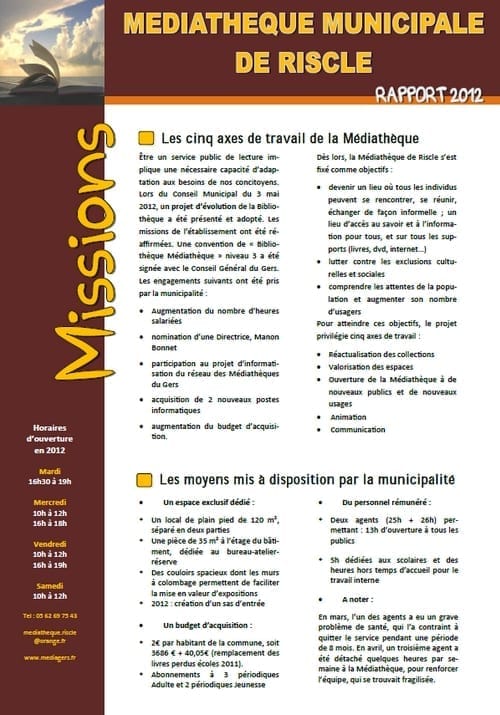 Les rapports de la Médiathèque Municipale, rédigés depuis l'année 2007, à destination des élus et des populations du territoire, sont disponibles en ligne.