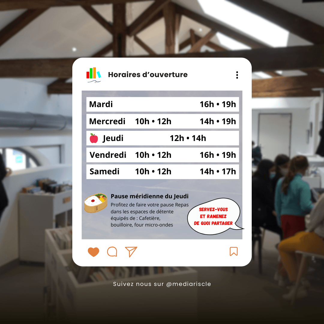 🕰️ La médiathèque est ouverte du Mardi au Samedi !